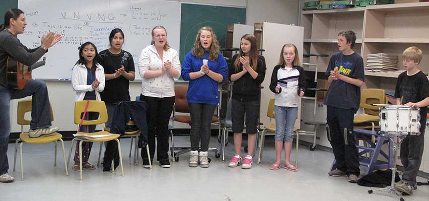 This partnership with Linda Duvall, The Dunlop Art Gallery, Arcola Community School and Sheldon-Williams Collegiate is the sixth residency focusing on music, storytelling, creation, and performance.